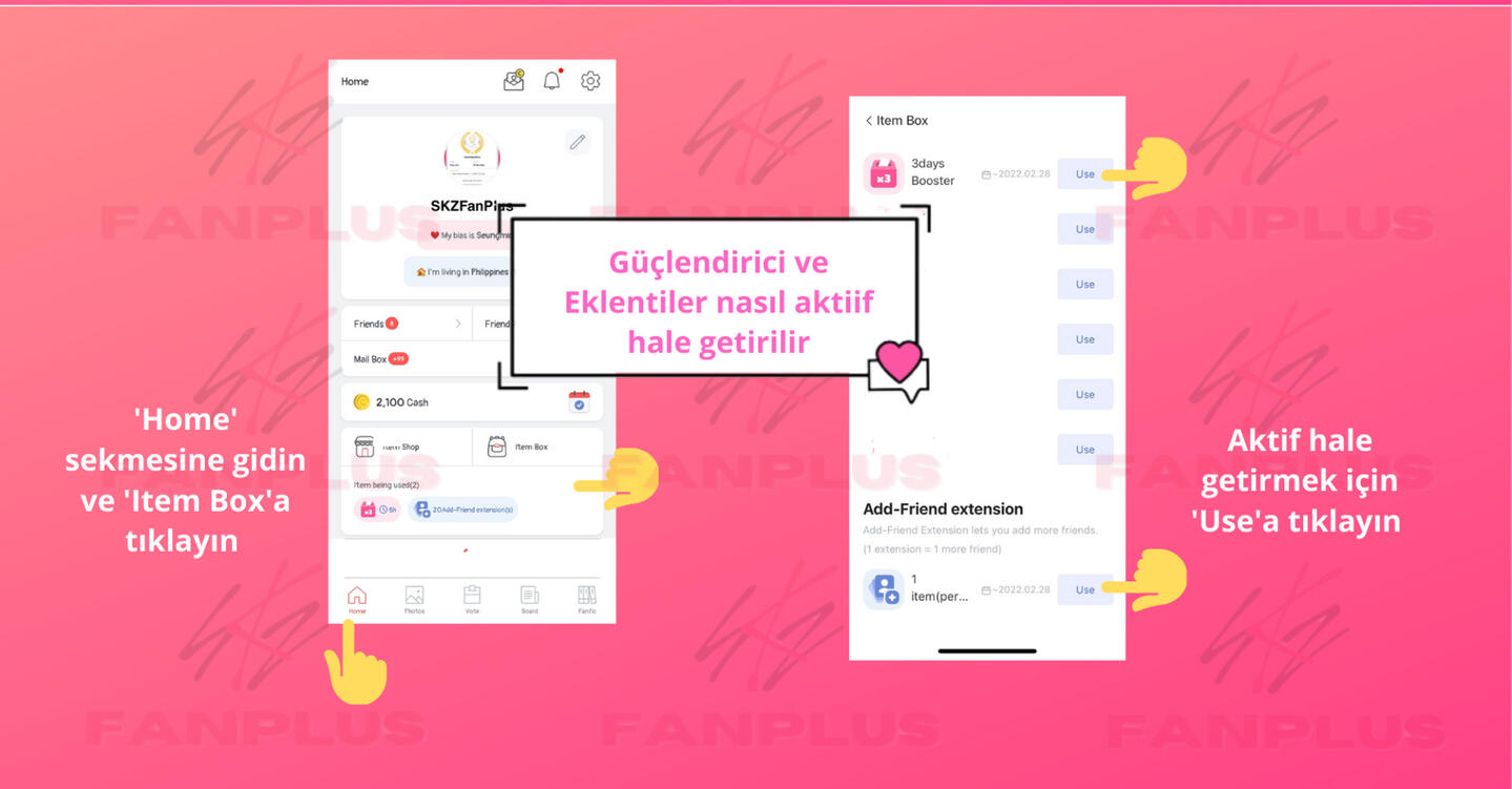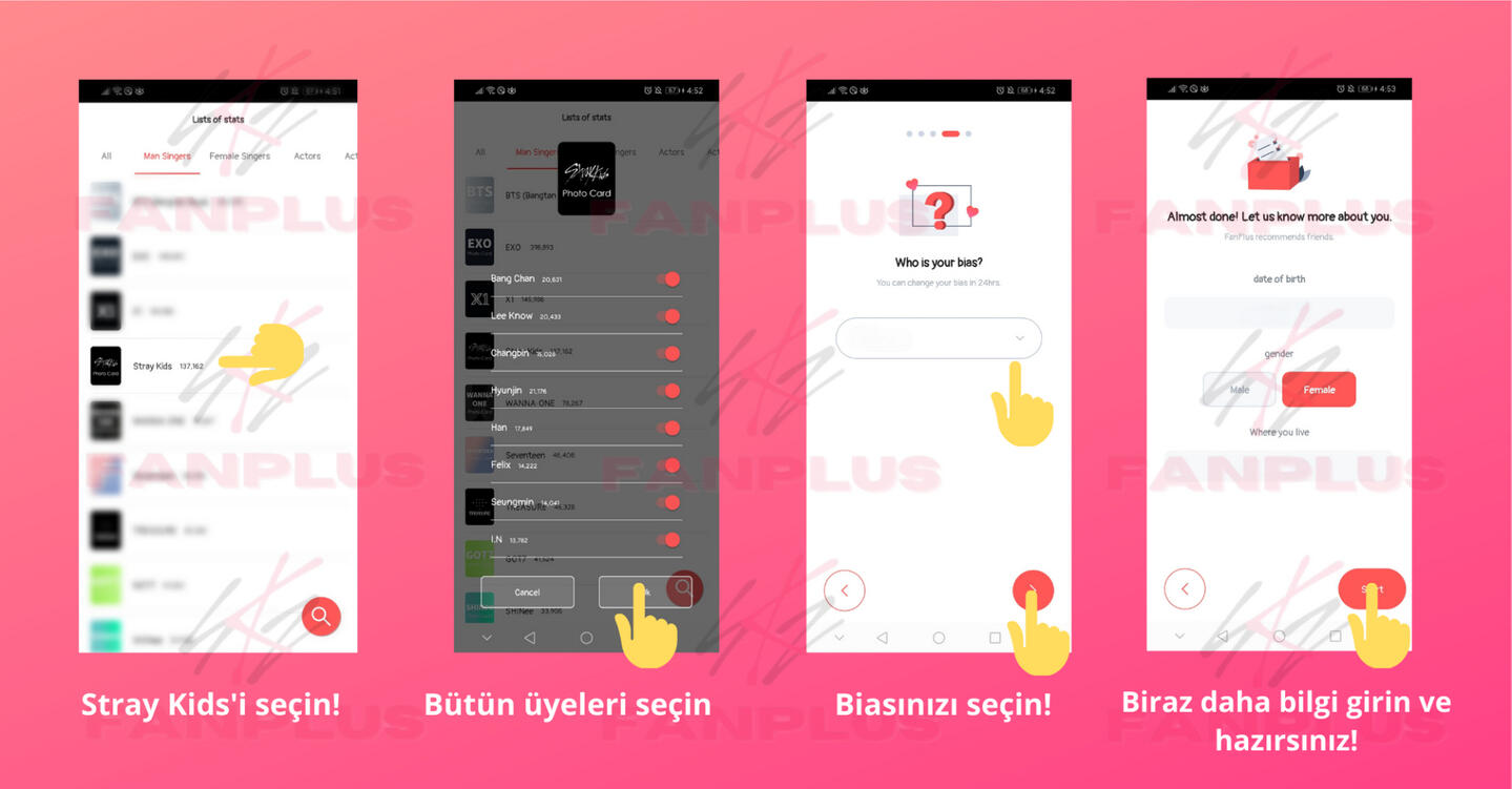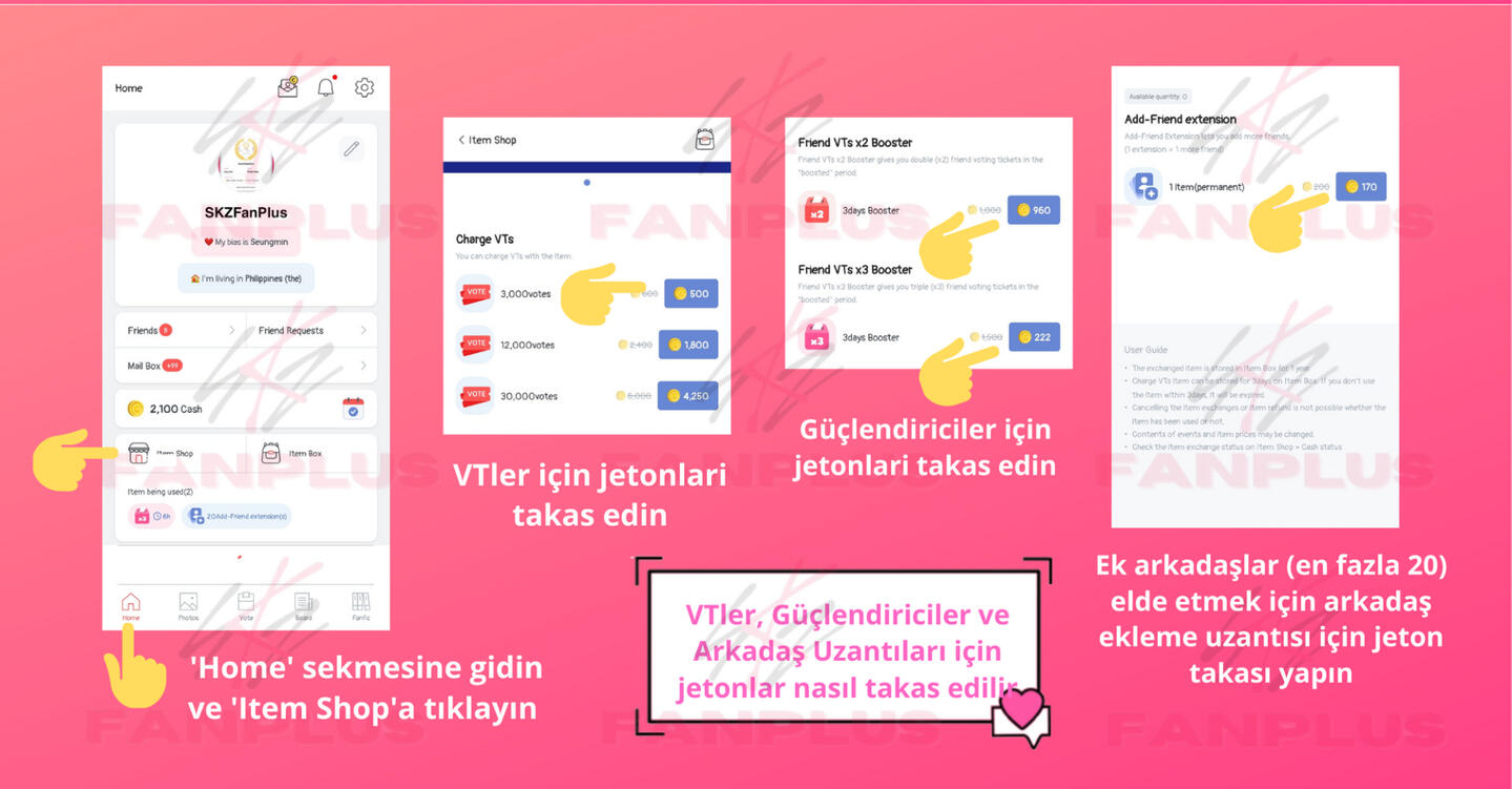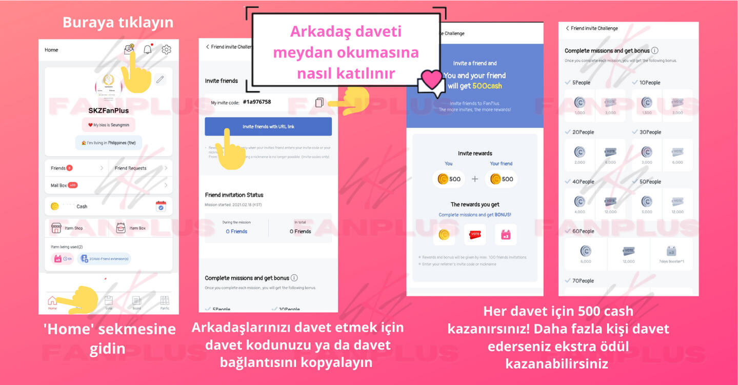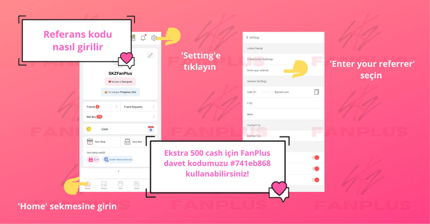 Arkadaş ekleyinSKZ Panosu üzerinden paylaşım yaparak daha fazla arkadaş edinin, böylece diğerleri sizi ekleyebilir!FanPlus sertifikanız için bir profil resmi ayarlayın böylece diğer STAYler güvenilir olduğunuzu bilir ve sizi eklemeye daha yatkın olurlar.