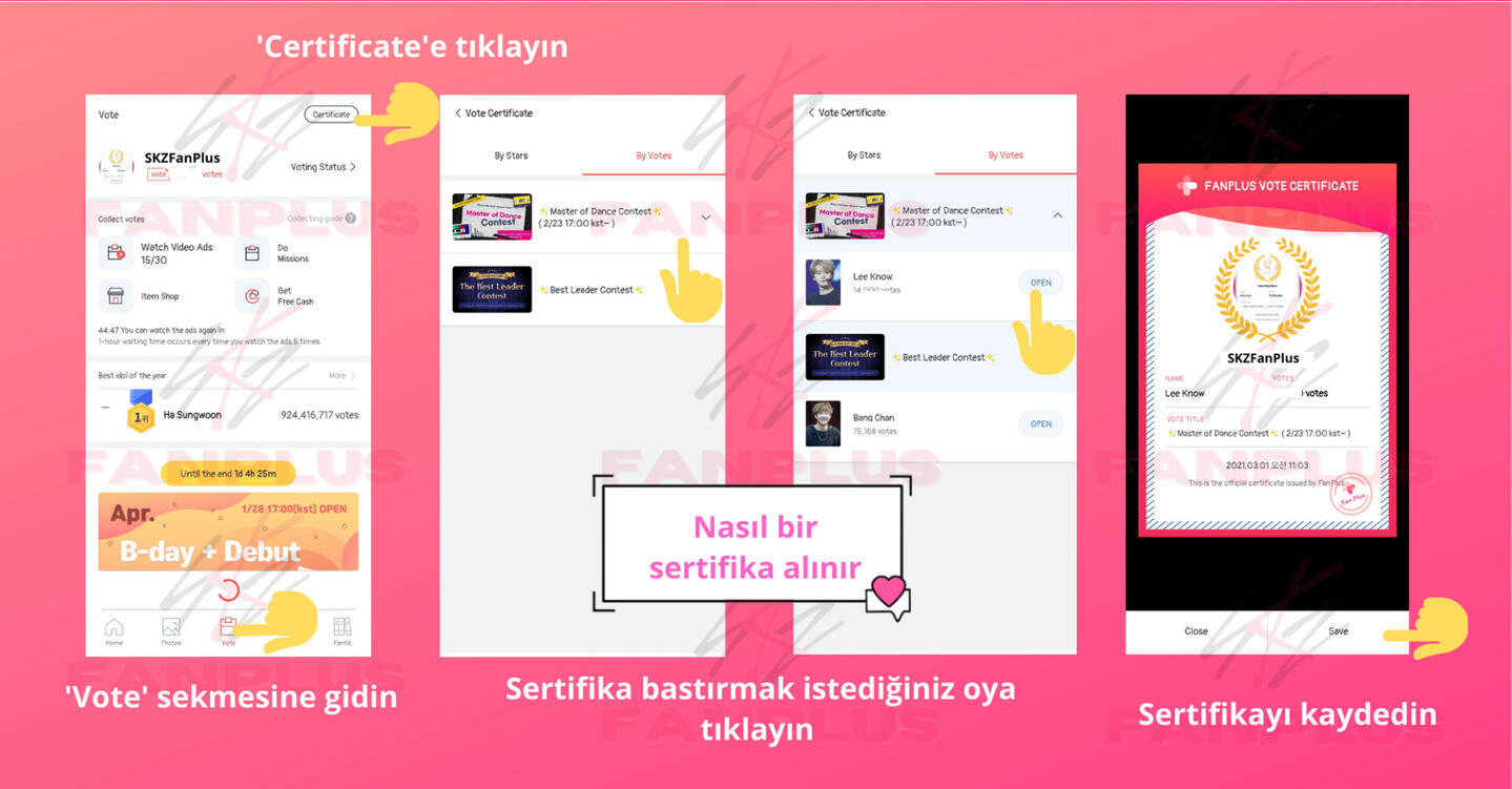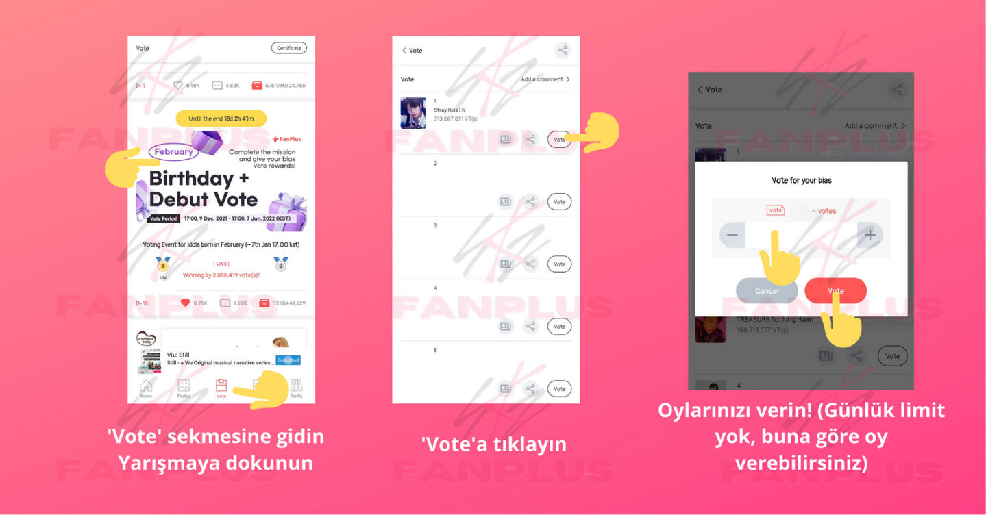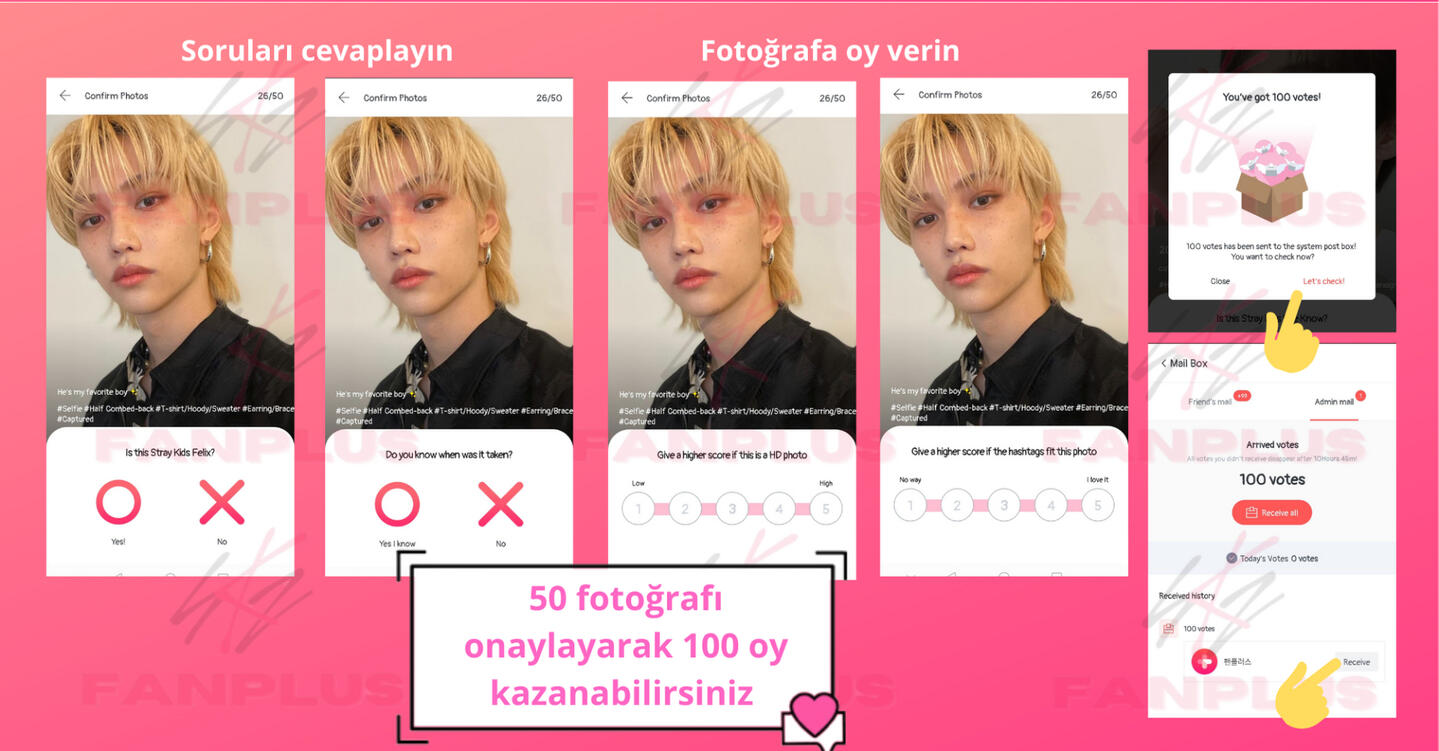4.) 50 fotoğrafı onaylayın50 fotoğrafı onaylayarak oy kazanın (günde bir kez kazanılan oylar) ve başkalarının da onaylaması için resimler yükleyerek diğer STAYlerin daha fazla oy kazanmasına yardımcı olun!